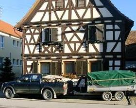 Das fertig geschnittene Holz wird mit Pickup und Hänger